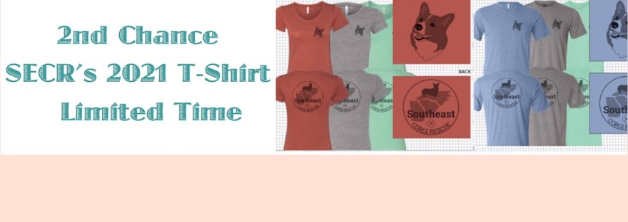 To order, please visit the link below to select the style (Men’s/Unisex or Women’s), size, and color of your choice. Each shirt is still $21 and all proceeds will go directly toward the support of corgis and corgi mixes in foster with SECR.