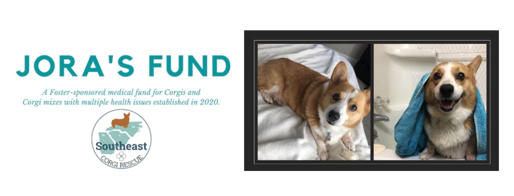 Jora came to us as a stray shelter pull, overweight with several health issues, including a corneal ulcer that required several visits to a veterinary specialist. Jora’s Foster Mom, who became Jora’s Forever Mom, donated $10,500 to SECR to establish a special medical fund in honor of Jora and the wonderful care she received through us. Jora’s fund is to help us defray expenses for future SECR Corgi and Corgi mixes with multiple health issues.