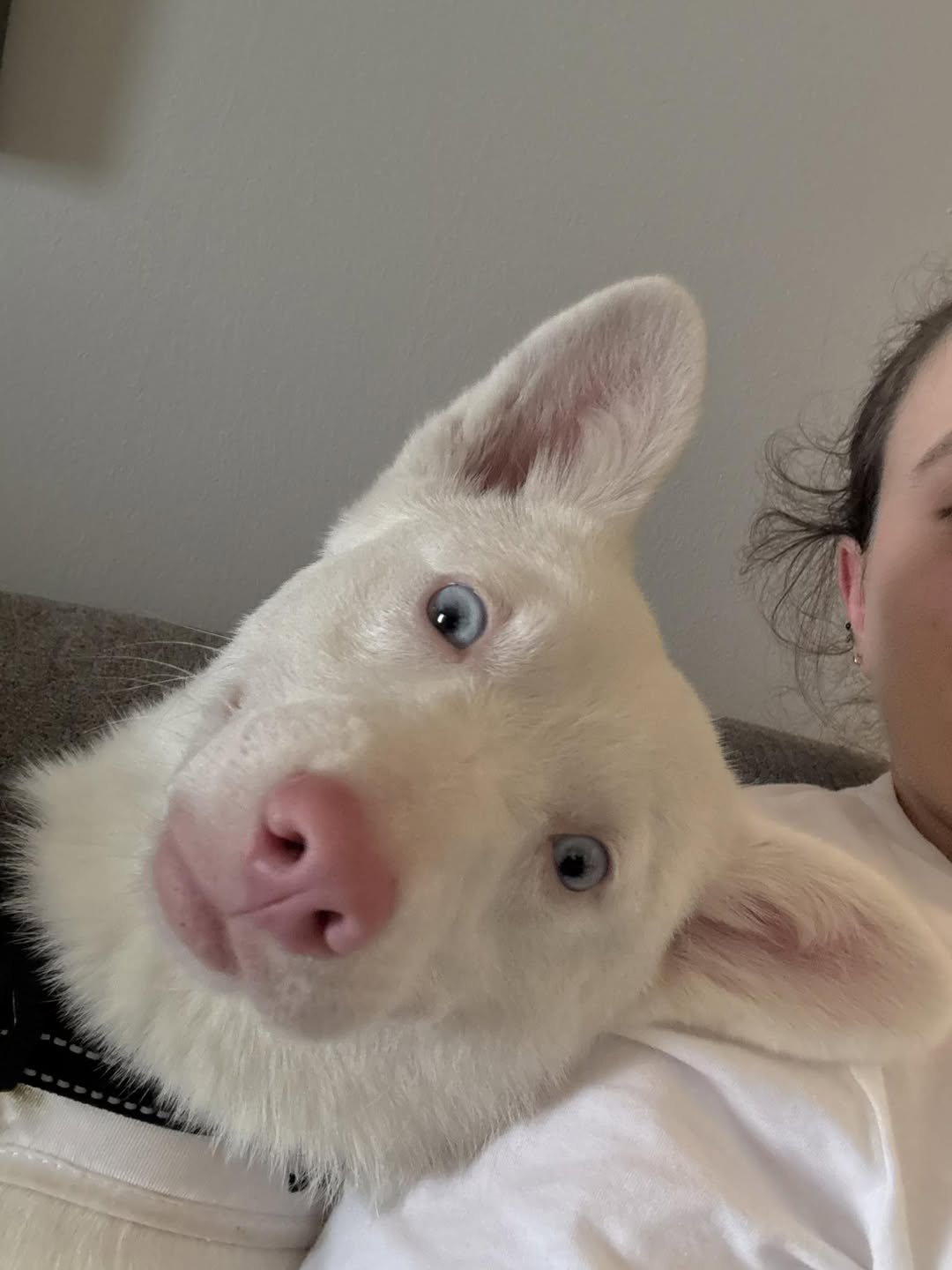 Meet Finn. He’s a young boy that just joined us, and has been through a lot in his short, little life. His Mom and Dad both carry the double merle gene, and as a result Finn was born deaf. He’s as cute as can be, but not being able to hear gives Finn high anxiety and always puts him on high alert. He’s slow to trust new people and other animals – exhibiting fear anxiety until given ample time to decompress – and is battling other internal health issues that are likely contributing to his fear.