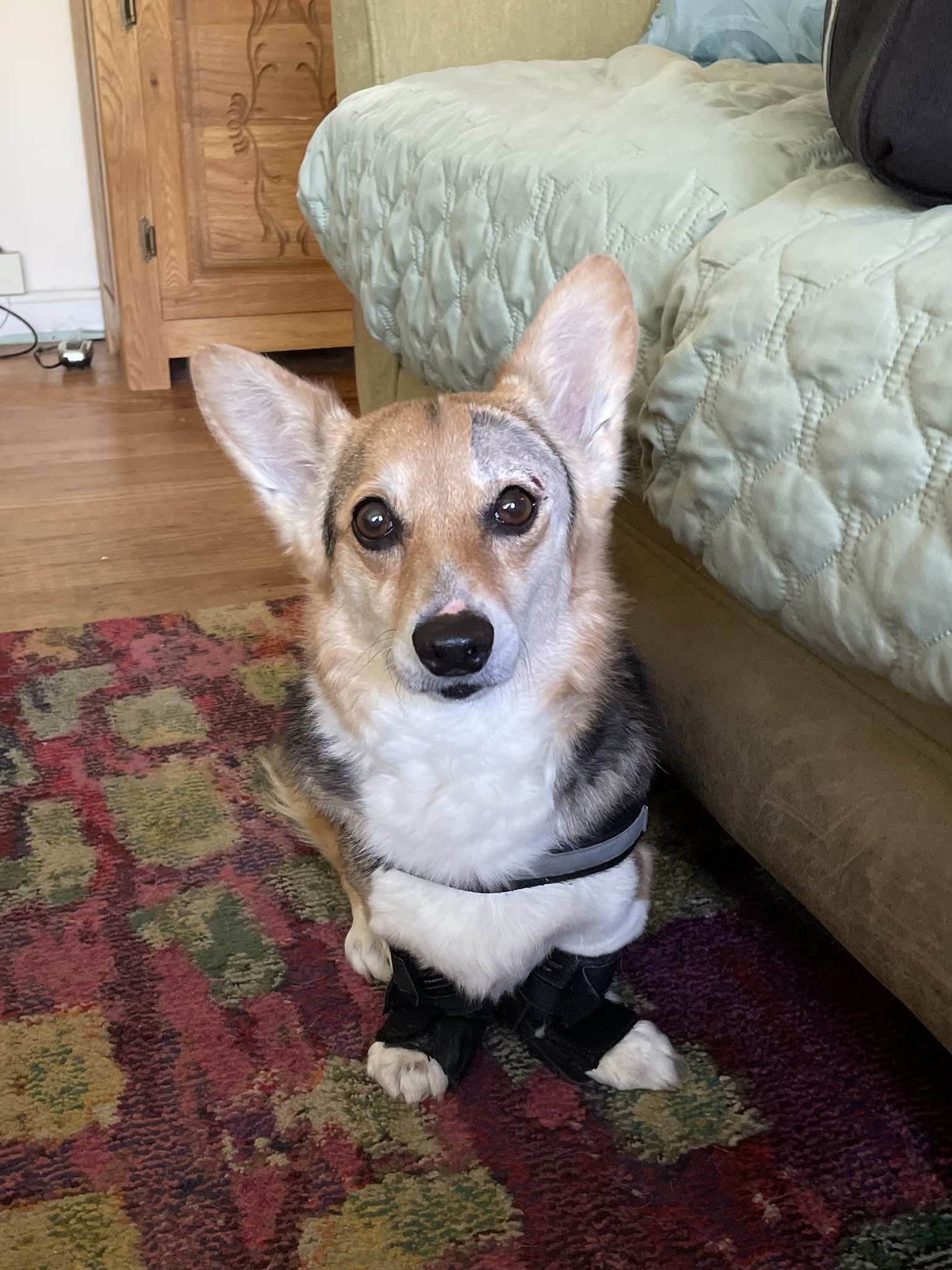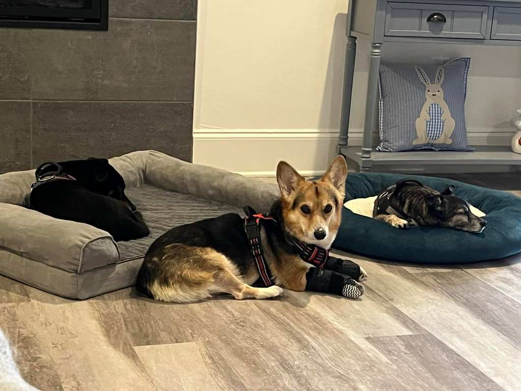 It took a while to find the right foster placement for Rory, and unfortunately for her we had to bounce her through several homes to find the one that would be able to provide the daily, ongoing care that she’d need to improve her condition. As a special needs dog with an immune disorder, Rory’s health issues will never disappear. She’ll always be a dog with special needs and at least some mobility issues. But, with diligence, we can minimize her symptoms and optimize her mobility, making Rory the best corgi she has it in her special set of abilities to be.