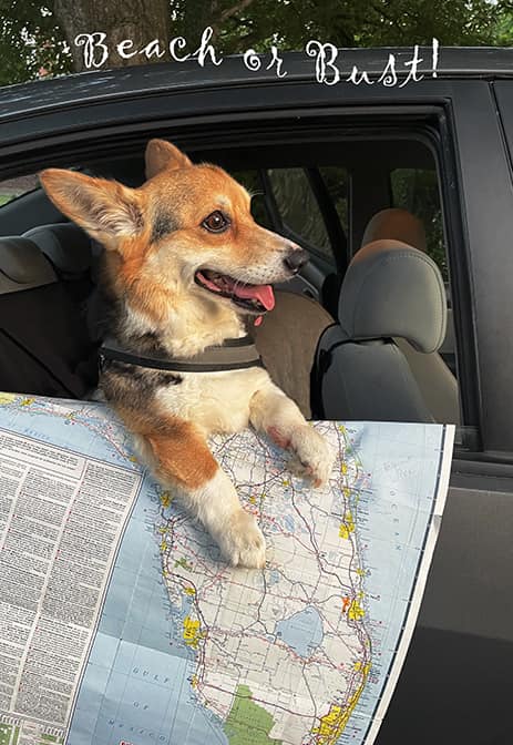 Traveling this summer and wish you could have a trusty corgi sidekick to join you? Rory loves to travel and makes for a pretty awesome backseat driver!