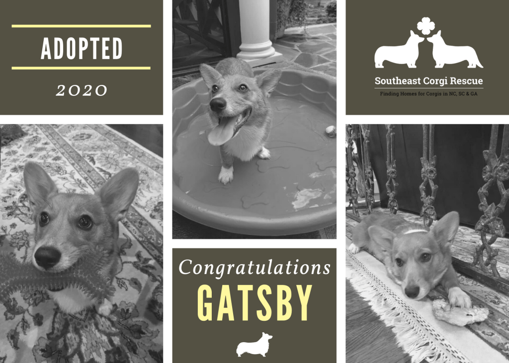 When Gatsby joined SECR back in April, it didn’t take us – or him – long to realize that he struck it rich in his new home (aka, the West Egg). He got a wonderful family that was willing to do all it took to coach him through the wonders of being a Corgi pup, making sure he got all the necessary healthcare and training he needed to thrive. He bonded quickly with Mom and Dad and his human sister, and even found a new best friend in his canine cousin, Willie. This was a match made in forever and today we are happy to announce that Gatsby is moving up the ladder of life again. He has been officially adopted by his foster family! Congratulations, Gatsby, we’re all running zoomies for you and wish you and your family the best life together.