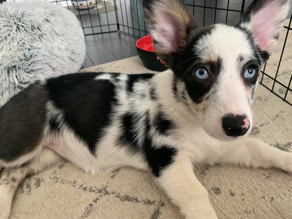 July 5, 2020: Please join us in welcoming the newest pup to the SECR crew, Cora! Cora is a 3 month old Corgi mix – likely 3/4 Corgi and 1/4 Aussie – that comes to us as an owner surrender, quite literally to save her life. This sweet girl was born with a congenital heart defect known as PDA, which is the failure of a large blood vessel to close after birth in order to properly direct blood flow to the lungs. Without this closure blood doesn’t flow the way it should, and pups can experience larbored breathing and coughs. Heart englargement like Cora’s is also common, and without surgeries pups typically won’t survive.