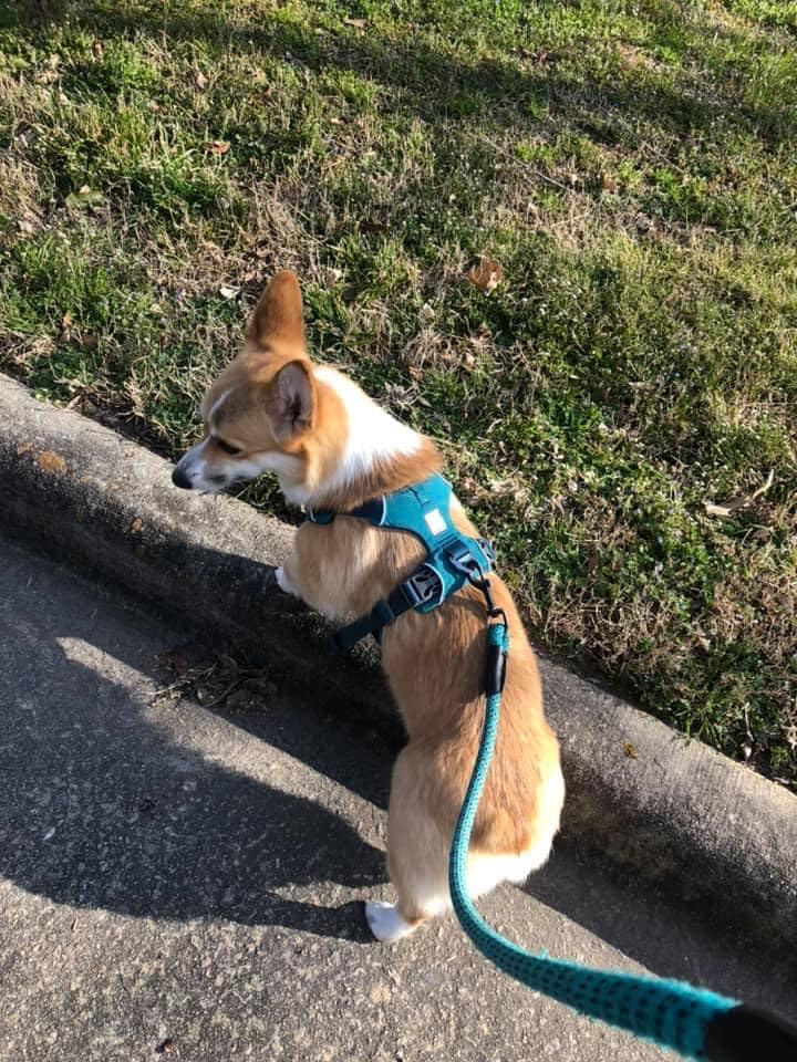 Navie comes to us as an owner surrender. She has anxiety around and aggression towards other dogs and while her Mom loves her very much she has a baby on the way and another dog, and needed to rehome Navie so she could thrive as an only girl. We’re happy we are able to step in and work with Navie to help her become the best Corgi she can be.Navie will be settling in as the only dog in her foster home tonight and we’ll post more as we learn more about her.