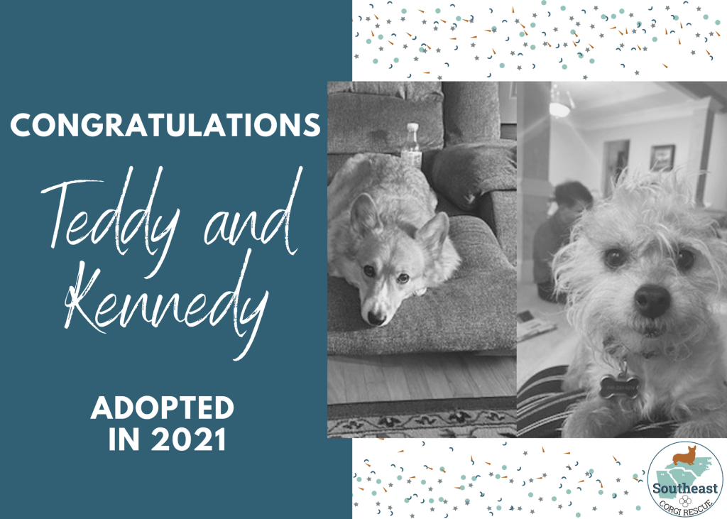 When you’re part of a bonded pair, you quickly learn to share – and do – everything together. When one plays, so does the other. When one sleeps, so does the other. When one goes on an adventure, so does the other. And, when one gets adopted, so does the other! We are so excited to announce today that one of SECR’s dynamic duos – Teddy the corgi and Kennedy the corgi-by-association – have officially been adopted by their foster family!