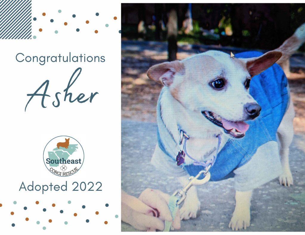 This sweet little chorgi joined the SECR family back in October when his elderly owner was no longer in a position to be able to provide the care he needed. He came to us a bit down on his luck, but settled in to his new foster home quickly and developed a tight bond with his chihuahua foster sister, Felice. Tight bonds are ones you never want to break, and lucky for Asher – and us – we won’t have to! Asher has been officially adopted by his foster family and we couldn’t be happier that they’re sticking together forever.
