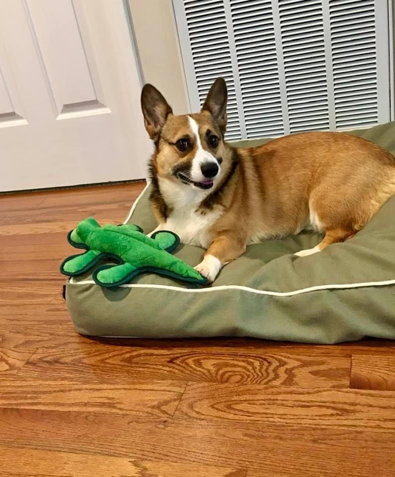 This distinctively marked beauty is a shy, but active 4 year old who dreams of living her best corgi life — hanging with her people, cuddling on the couch, receiving treats, playing fetch, and chewing on her squeaky toy. She is looking for a calm but active home where she can be the center of attention and, in return, she will lavishly share her presence with her companions.