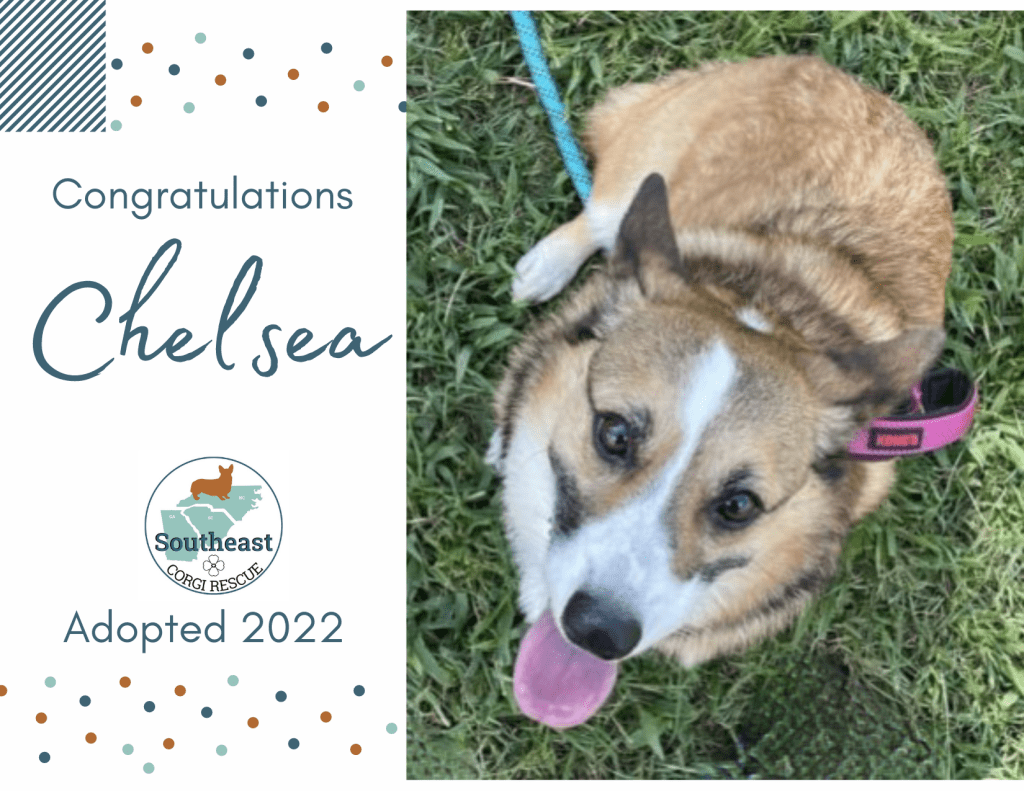 Chelsea can’t wait to ring in 2022 with her new forever family on New Years Day. Her adoption fee is $450. To learn about SECR’s adoption process and download an adoption applications for Chelsea, go to — https://southeastcorgirescue.com/help-us-help-them/adopt/