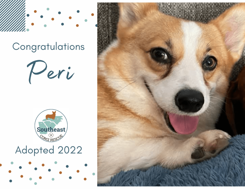 Our girl Peri joined the SECR family in August, making a name for herself as the youngest gemstone from Operation Corgi Drop 2.0. She settled in quickly to her foster home and found a new best friend and cuddle buddy in her brother, Toby. It’s hard to give up a good life like this one when you’ve found it, and lucky for Peri, she never has to! She’s been officially adopted by her foster family and we wish them all a long and happy forever together.