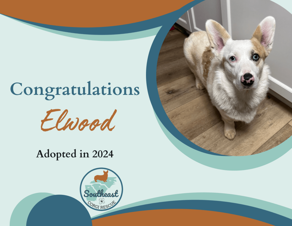 Congratulations, Elwood! We wish you, your Mom, and your new corgi siblings a long and happy forever together!