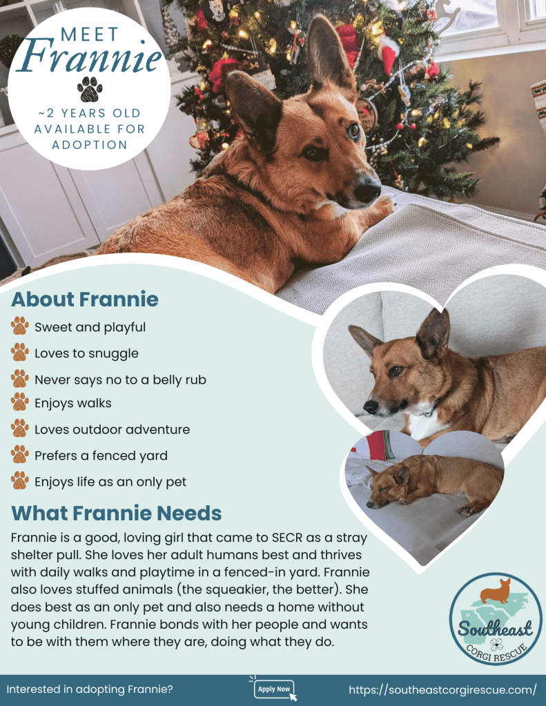Cheers to 12 adoptions this year! Congratulations, Frannie, on finding your forever. We couldn’t be happier for you and your new family!